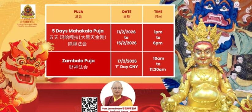 TDSPJ is organizing 5 days Mahakala puja on 11 February to 15 February and CNY event on 17 February. Let’s us join the puja and event for the benefits of all.